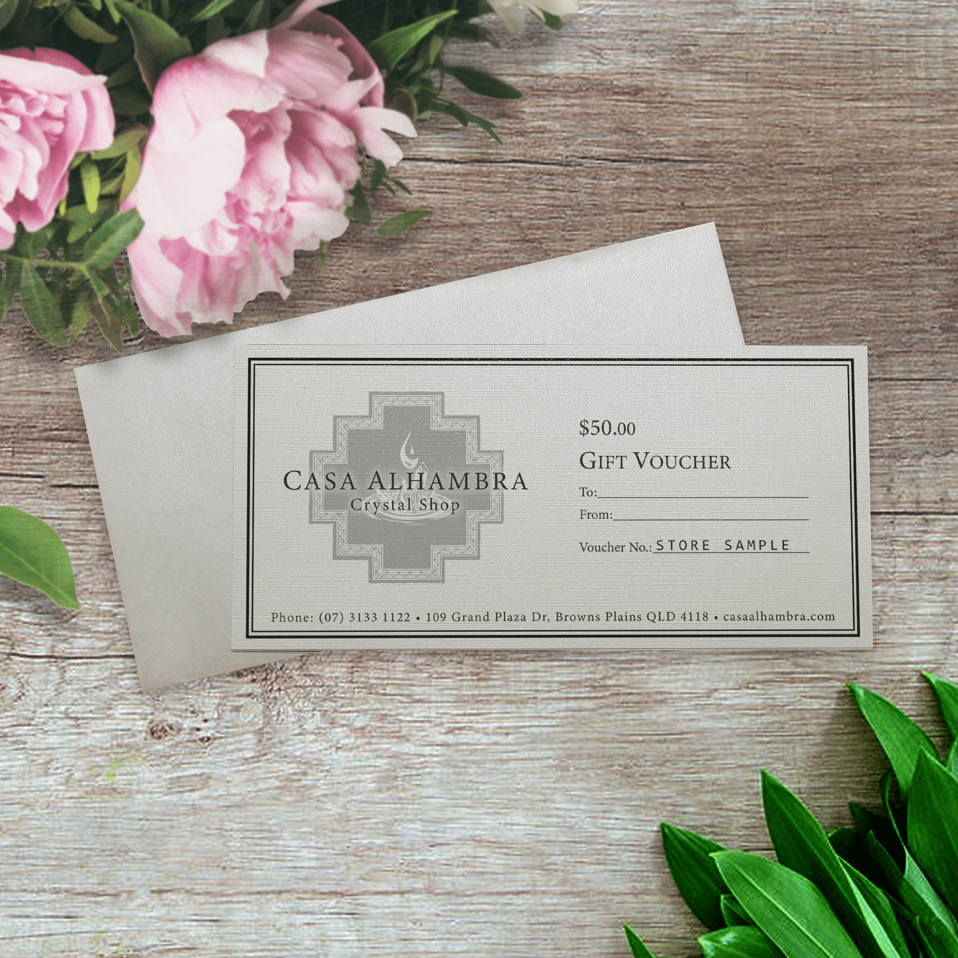 This gift voucher is good at all Casa Alhambra locations and online stores. This voucher may be applied to the cost of any items and services offered by Casa Alhambra. This voucher is not exchangeable for cash, and/or will not be replaced if lost/stolen. Remaining credit will not be paid out in cash. A physical gift voucher must be presented at the checkout to use for in store purchases.