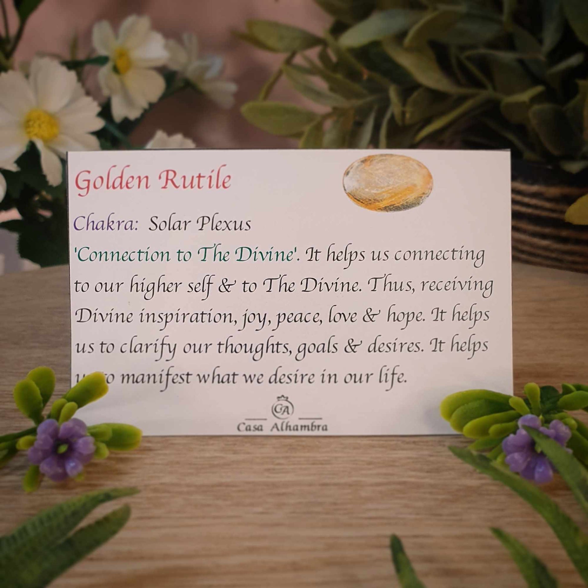 Golden Rutile strengthens our connection to the Divine. It helps us connecting to our higher self and to the Divine. Thus, receiving inspiration, joy, peace, love and hope. It helps us to clarify our thoughts, goals and desires. It helps us to manifest what we desire in our life.