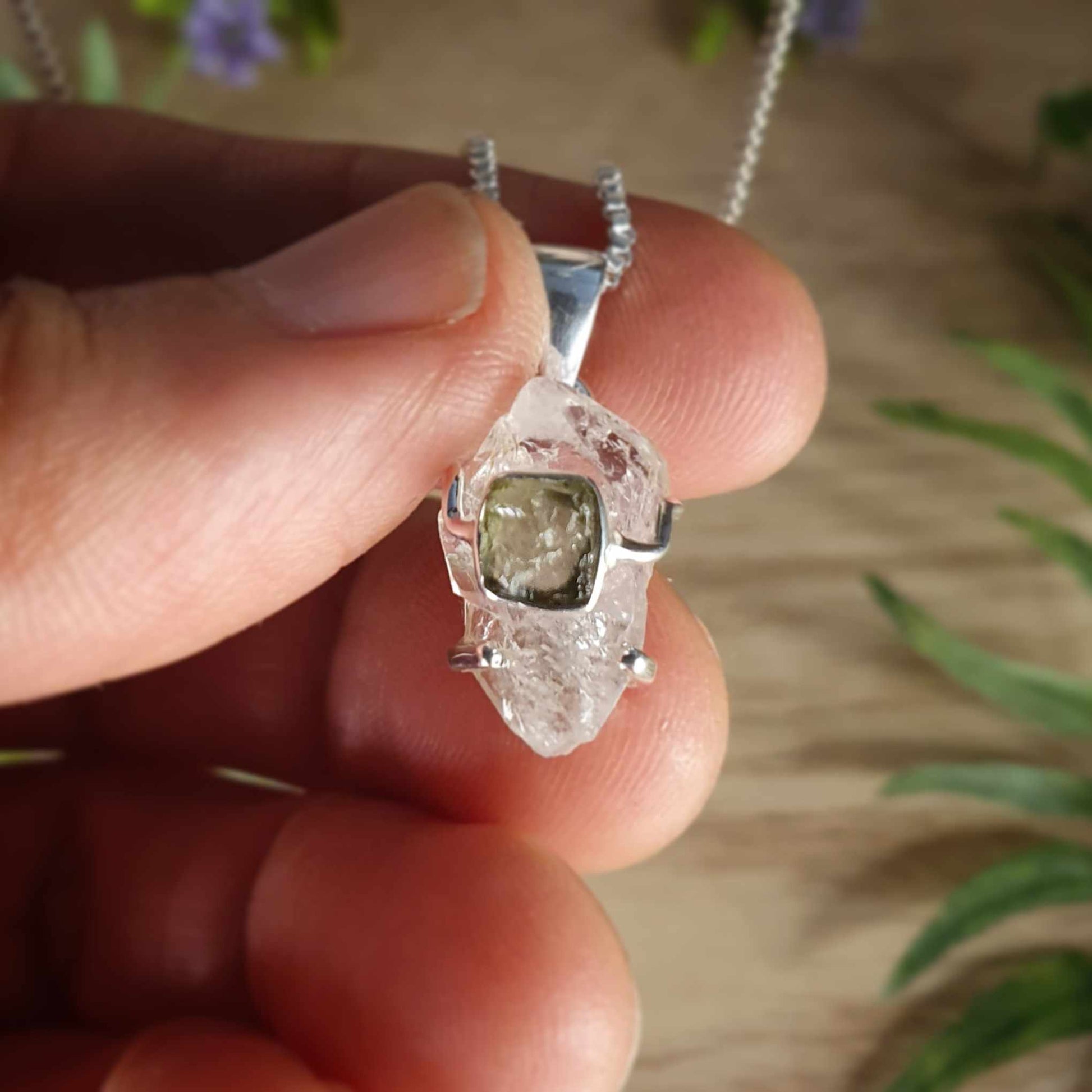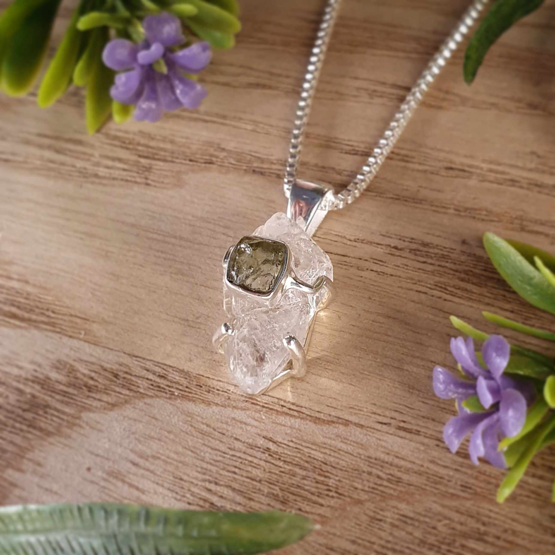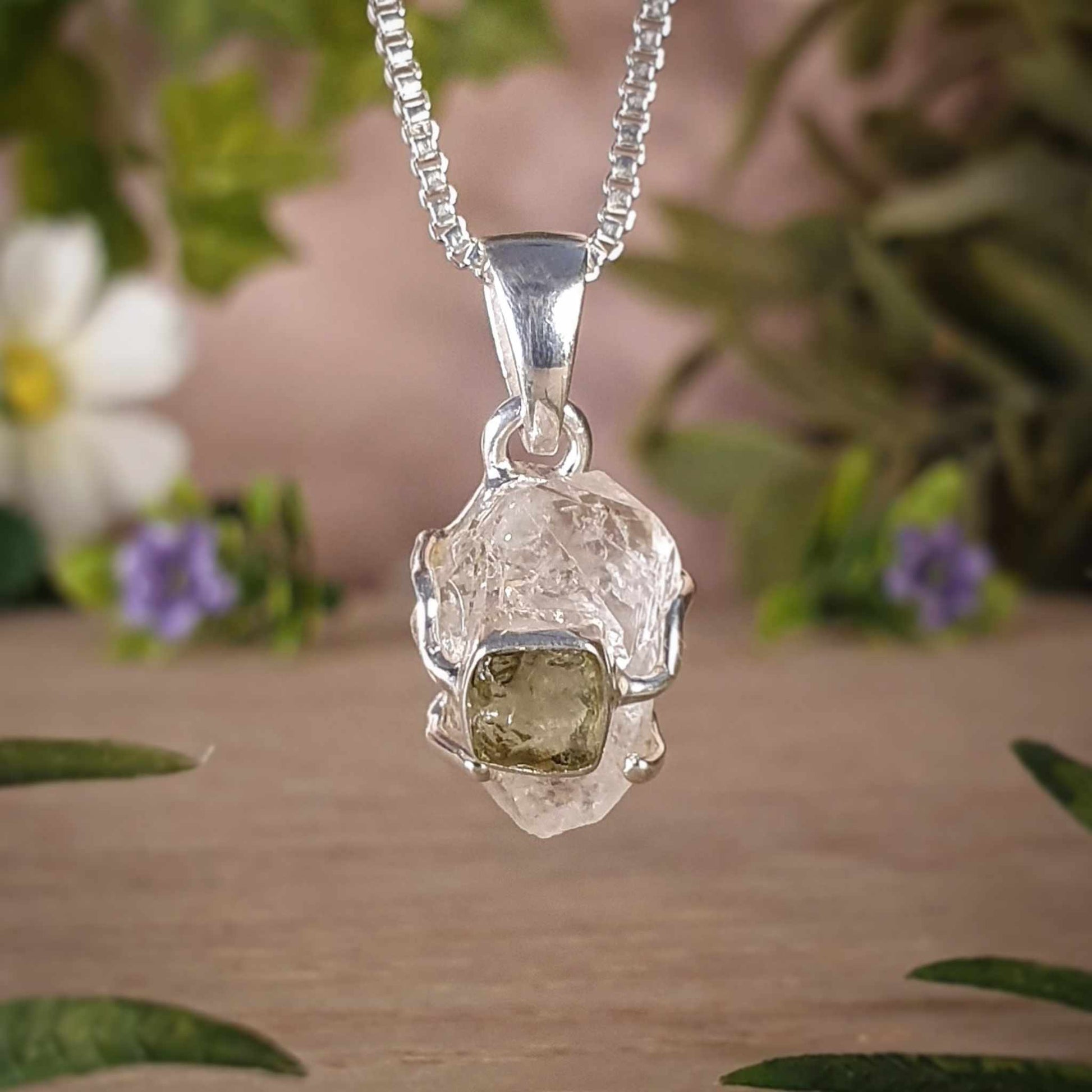 Moldavite, Herkimer Diamond Pendant