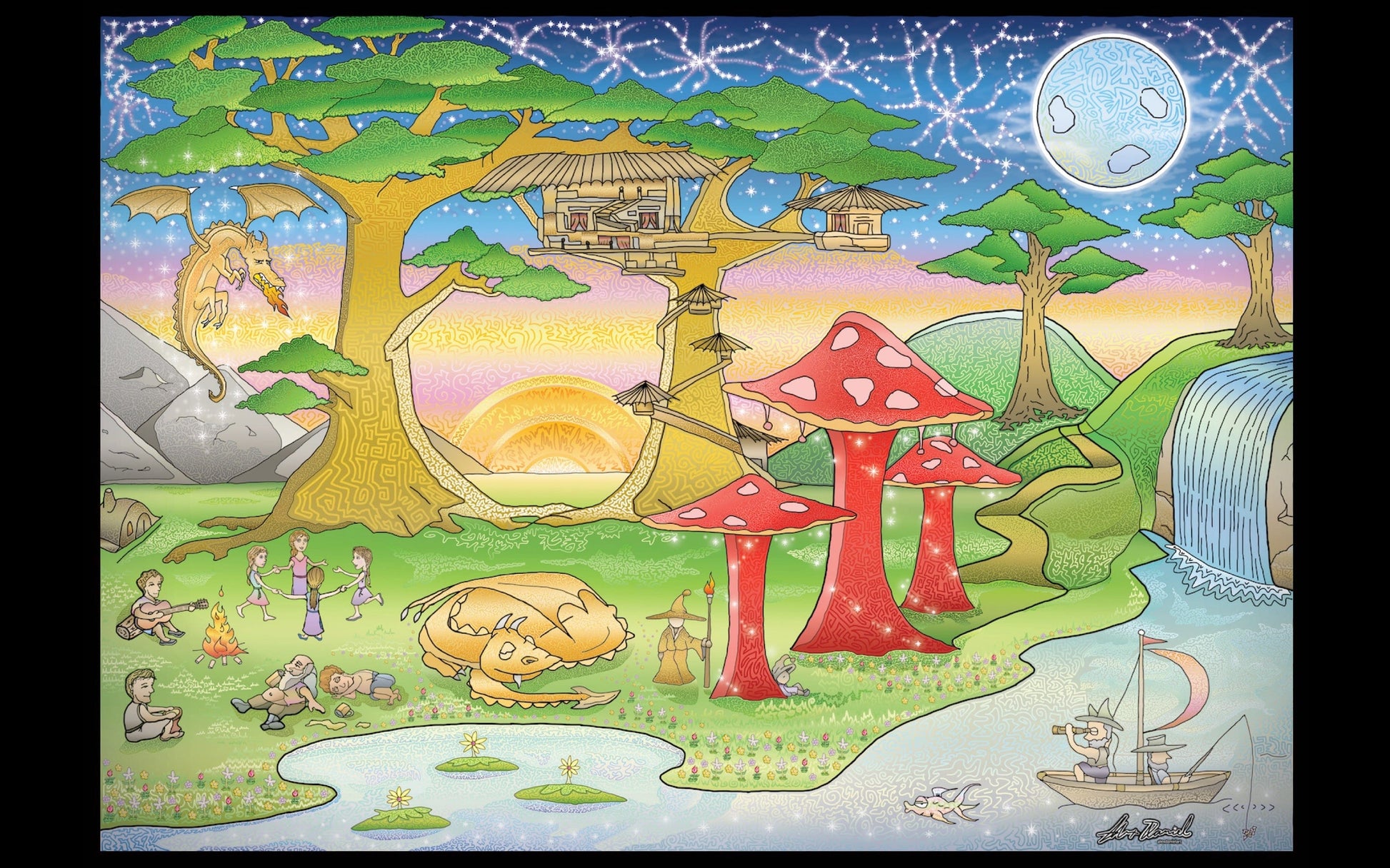 The Mushroom Forest represents the perfect harmony and balance found in nature, animals and humans. There is beauty found in the smallest details and every element has its reason for being and contributes to the overall picture.