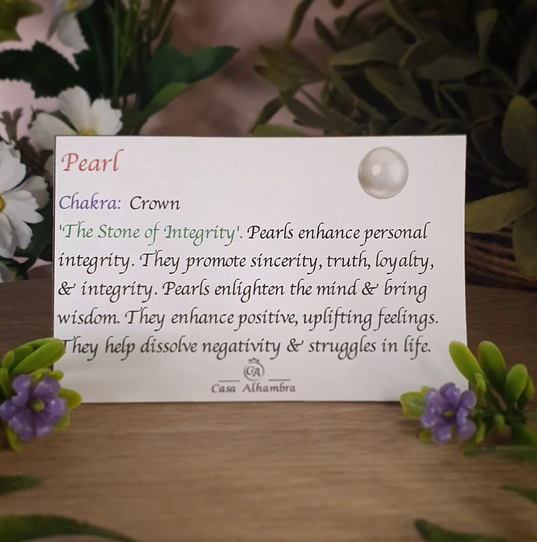 Pearl is known as the Stone of Integrity. Pearls enhance personal integrity. They promote sincerity, truth, loyalty and integrity. Pearls enlighten the mind and bring wisdom. They enhance positive, uplifting feelings. They help dissolve negativity and struggles in life.