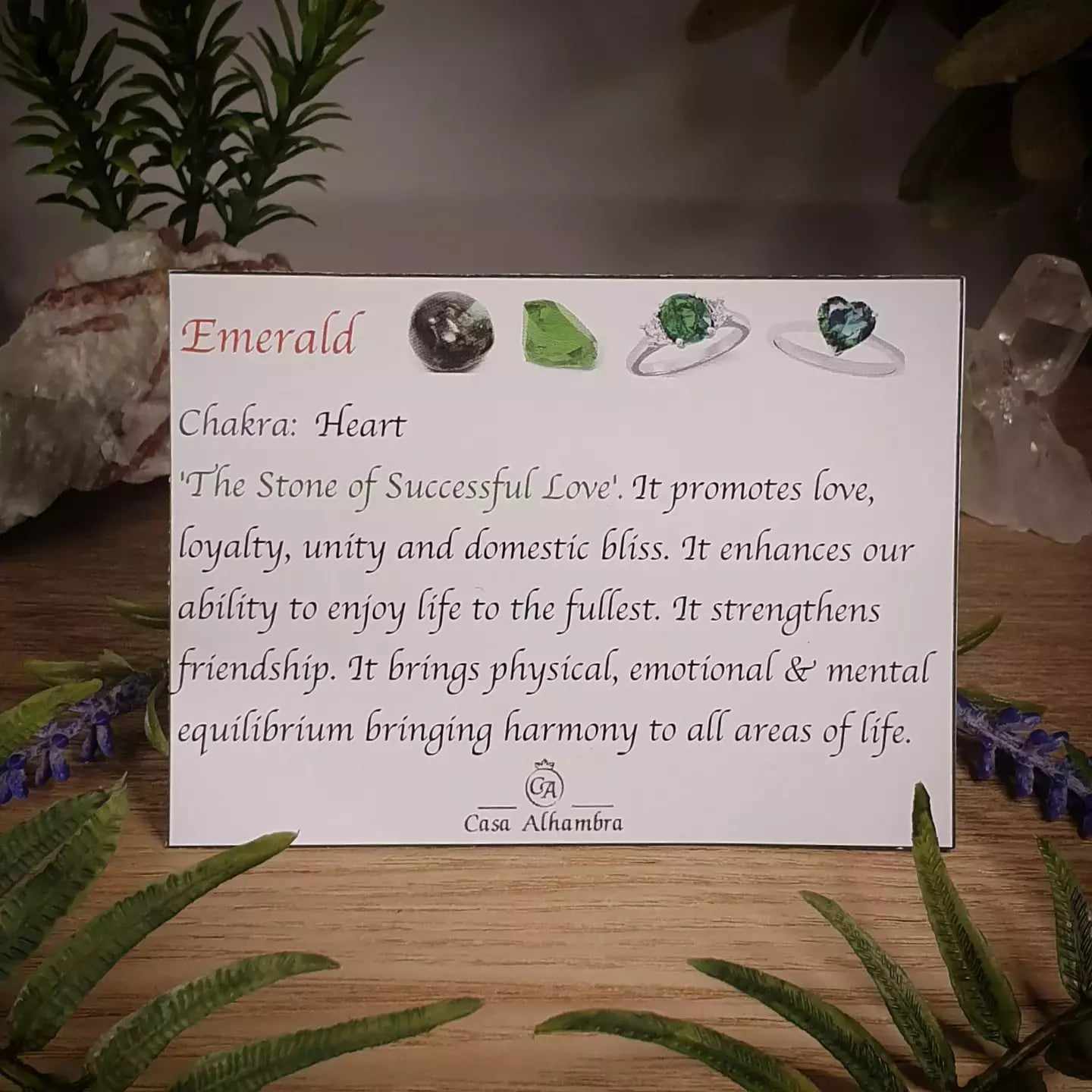 Emerald is the Stone of Successful Love. It promotes love, loyalty, unity and domestic bliss. It enhances our ability to enjoy life to the fullest. It strengthens friendship. It brings physical, emotional and mental equilibrium, bringing harmony to all areas of life.
